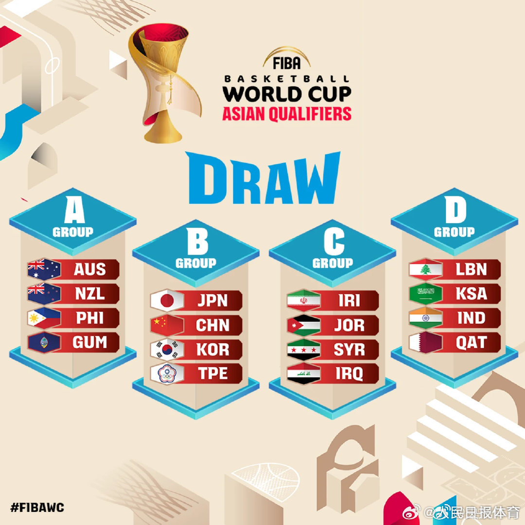 2027年男篮世界杯预选赛亚洲区分组结果揭晓,中国队被分在B组,同组对手为日本队、韩国队和中国台北队。此次预选赛分两阶段进行。