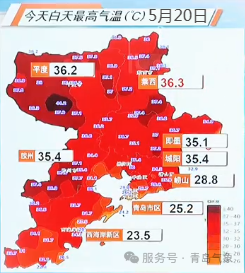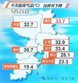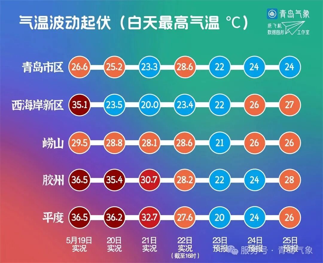19~20日,我市中北部地区出现了超过35℃的高温天气;昨天(21日),我市内陆地区的气温开始回落,但仍在30℃以上;今天(22日),各区市的最高气温都在30℃以内了;经过明天(23日)最高气温大幅度下降之后,这个周末,岛城的气温又会走起回升路,请大家注意及时调整着装。