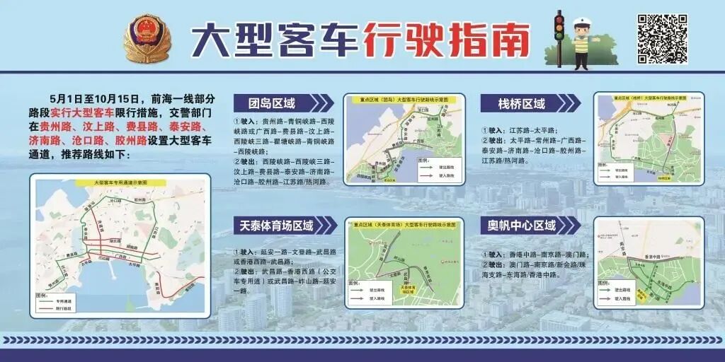 1、旅游大巴限行。自5月1日至10月15日,市区前海一线继续执行大巴限行政策,每日7时至18时,禁止大型客车在以下路段行驶:太平路(单县支路-江苏路段)、莱阳路、东海路(太平角六路-南京路双向全路段、台湾路-南京路东向西方向)、兰山路、河南路、湖南路、湖北路。