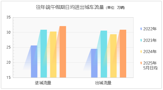 随着假期出行需求不断扩大,预计端午出行人流、车流较往年将有所增长。根据往年出行规律和近期流量变化分析,预计端午期间全市在途车流量日均约576.3万辆,同比增长10.3%,略高于5月日均流量。届时干线公路、交通枢纽、景区周边道路交通流集中。