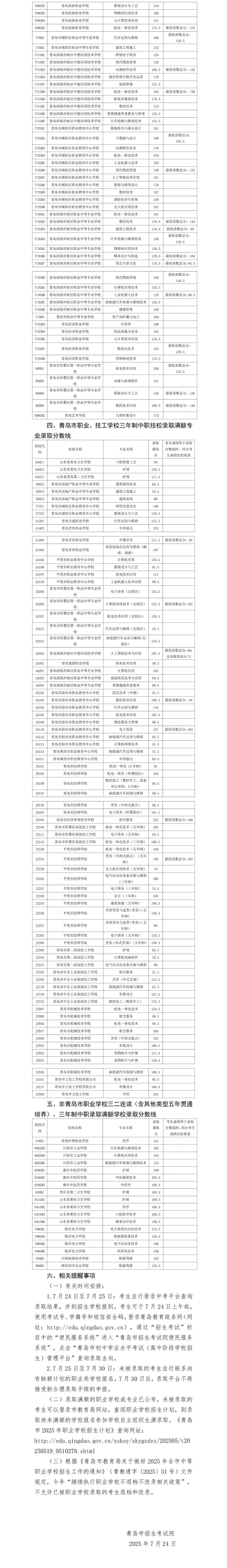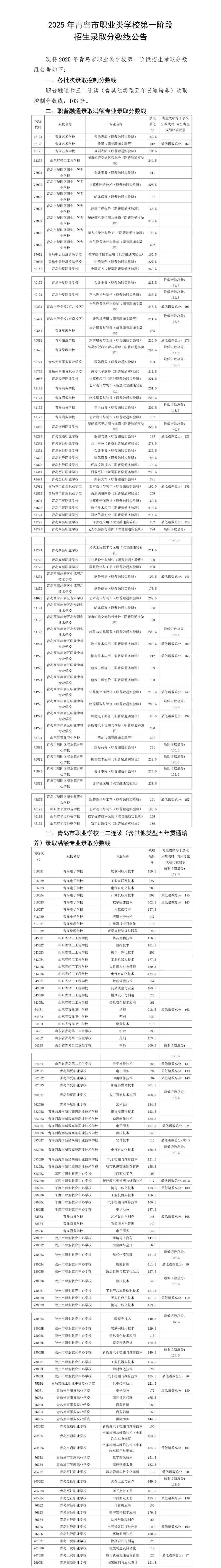 2025年青岛市职业类学校第一阶段招生录取分数线公布