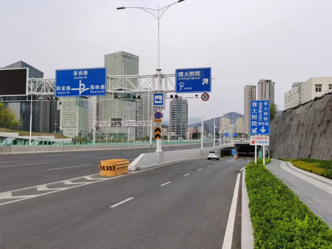 本项目通过构建智能化系统,实现周边停车资源统筹管理。今年1月崂山院区停车场启用后,实现与金家岭立交地下停车场有效联动,将周边泊位规模扩展至3050个,形成集地下环路、公共停车、行人系统于一体的综合交通中心。就医车辆可通过海尔路、银川路地下系统直达门诊。通过车位信息实时共享、智能引导与高效调度,项目显著缩短了患者停车等待时间,缓解了周边交通拥堵。