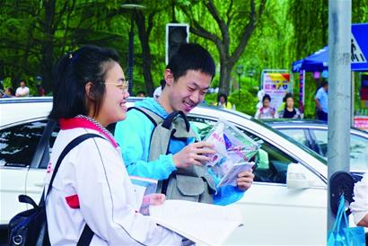 为了让刘敏的儿子孙笑寒在考场上好好发挥,记者没有贸然打扰他。但记者发现,小伙在校门口和熟人谈笑风生,一点也不紧张。 8时40分,刘敏目送着儿子进入了考场。
