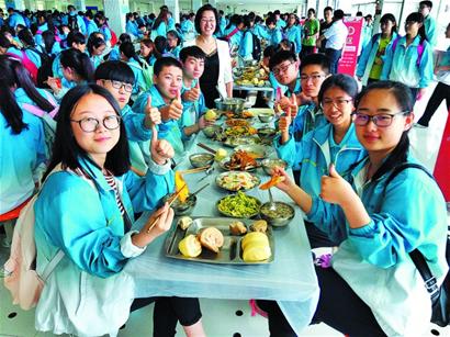 学生陆续抵达食堂,坐到相应的座位上,大快朵颐。记者看到,食堂分为ABCDE四个区,每个区内的桌子上都有相应的编号,学生们只需对号入座即可。 “我们此前已经以班级为单位,对就餐的学生做了编号,并发放了就餐手册,高考期间,学生都要各自就座,这样可以提高就餐效率,也便于管理。 ”于立程说。