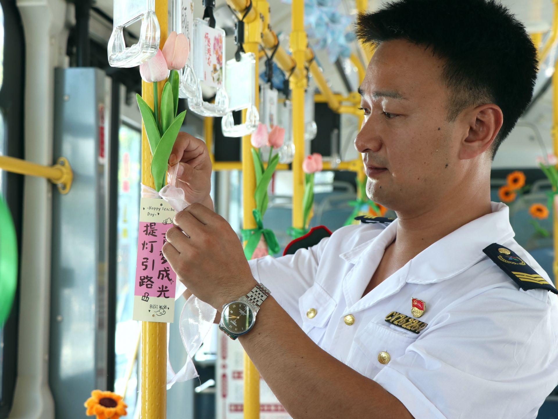 近日,青岛城运控股公交集团李沧巴士公司的两位驾驶员分别将302路和368路公交车打造成“感恩有您”与“趣味回忆杀”主题车厢,以充满温情与创意的方式,穿梭于城市之中,向辛勤耕耘的人民教师致以最真挚的节日祝福。