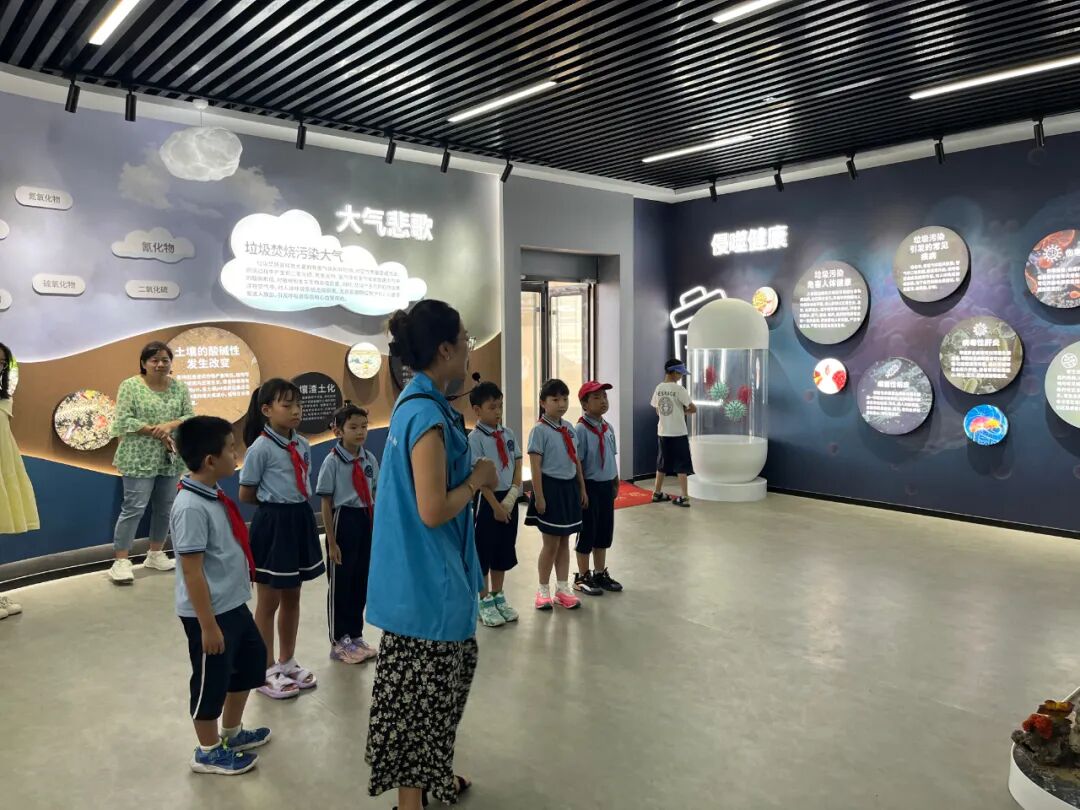 步入宣教大厅,“土壤危机”展示区率先引发学生们的关注。讲解员介绍,过去常用的垃圾掩埋方式,不仅占用大量土地资源,还会污染土壤、地下水与空气,排放的温室气体更对生态环境和人体健康构成风险。当被问及“一个塑料瓶多久能降解”时,学生们给出的5年、10年、50年等答案均不正确,“自然环境中需450年左右”的真相,让大家震惊之余,更坚定了保护生态的决心。而在“大气悲歌”相关讲解中,学生们了解到,垃圾焚烧虽能减少土地占用,却会释放有害气体与颗粒物,加速酸雨形成、损害植被与水生生物,还会危害人体呼吸系统,进一步认识到不当处理垃圾的严重后果。