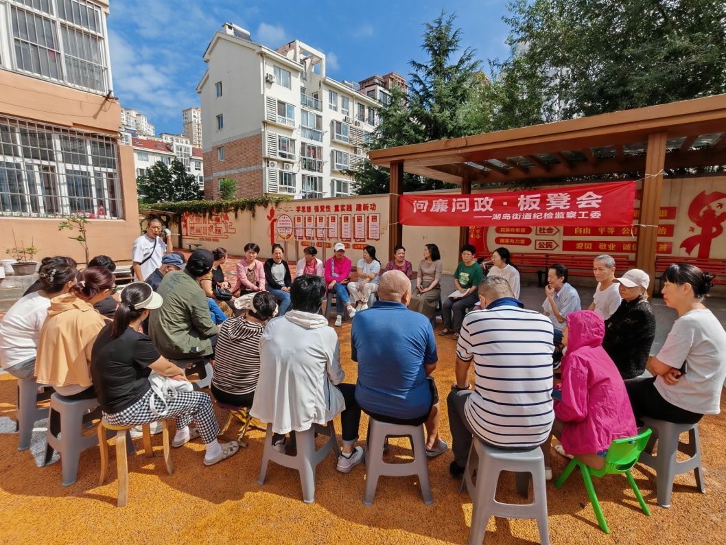 近日,一场场别开生面的“问廉问政·板凳会”在青岛市北区湖岛街道多个社区接连召开。街道纪检监察工委、社区、物业和居民代表围坐一圈,聚焦12345热线反馈的高频难题和民生关切,聊需求、提意见、想办法,推动居民诉求在“家门口”高效化解。今年截至目前,湖岛街道纪检监察工委已累计召开“问廉问政·板凳会”11次,吸引130余名群众积极参与,采纳群众有效提议5条,解决车辆停放、环境治理、设施维护等群众急难愁盼问题24个,现场答疑51次,推动完成实事办理22项。