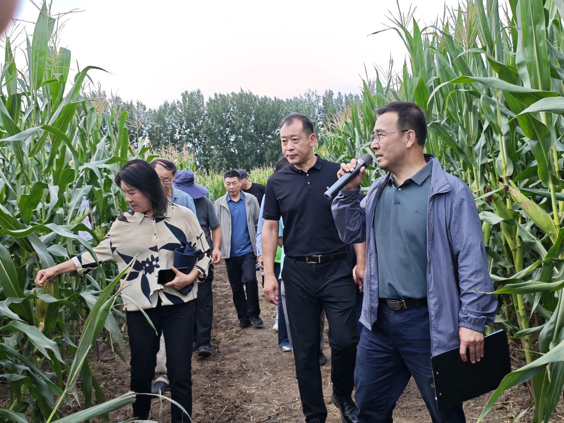 在崔家集镇省级品种展示评价基地,现场90个玉米品种集中“亮相”,既有市场认可的像登海605等主流“老将”,也有近年新推广的潜力“新兵”,涵盖耐密抗倒、早熟高产、抗病优质等多种类型,全方位覆盖不同种植需求,上演了一场多元品种的田间“大比拼”。与会人员走进田间,如同置身玉米“博览会”,直观观察品种株高、穗位等关键性状,亲身体验品种抗倒伏、抗病虫能力,通过“眼见为实”实现“看禾识种、按需选种”,告别选种盲目性。