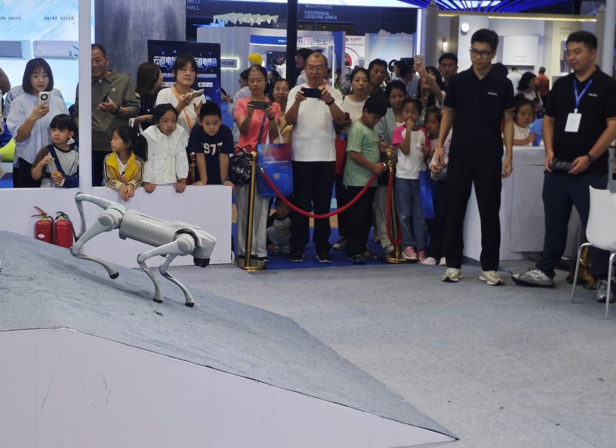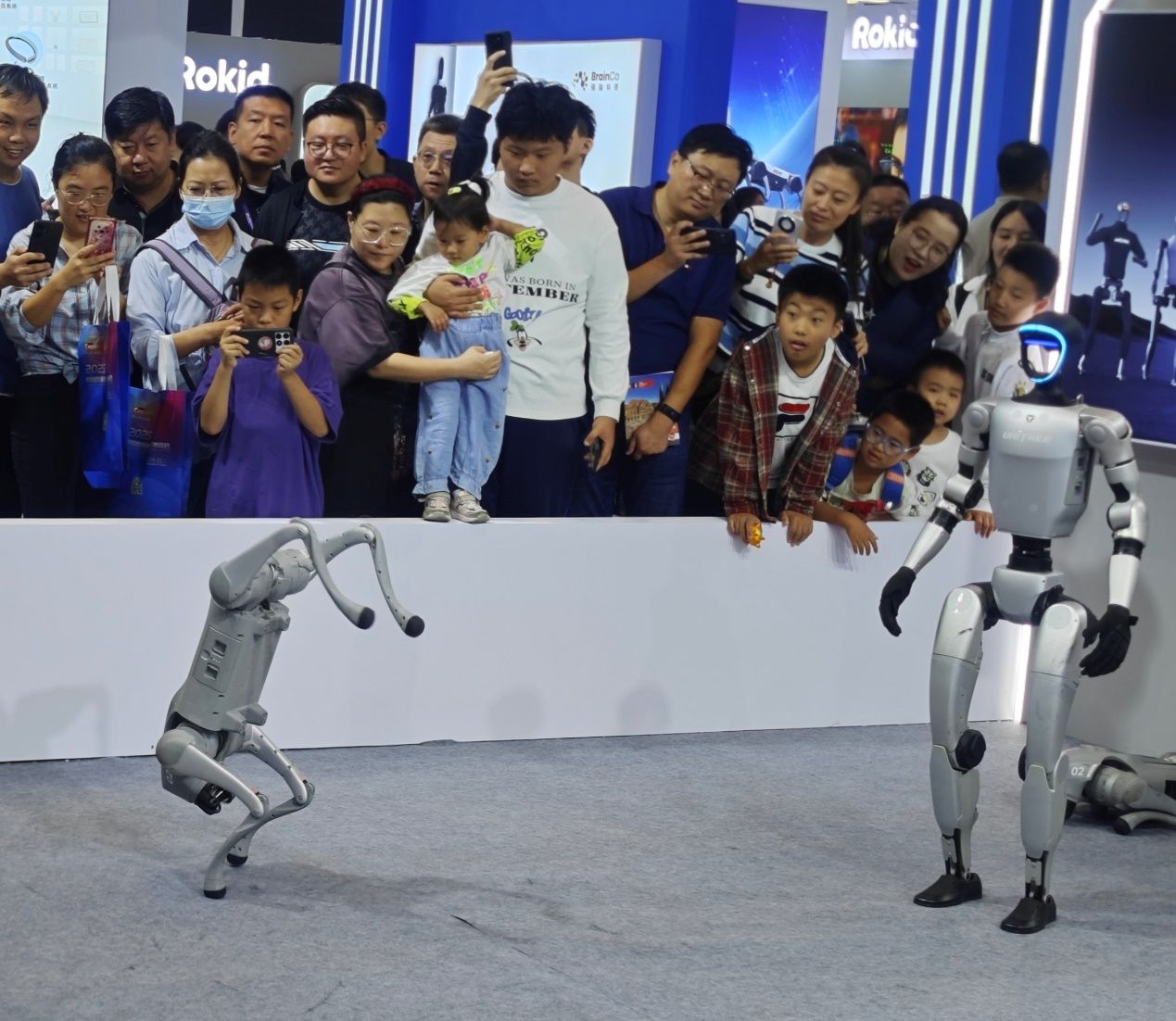 观看机器人、机器狗表演。