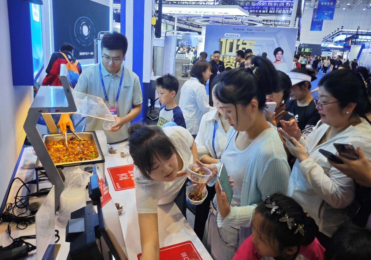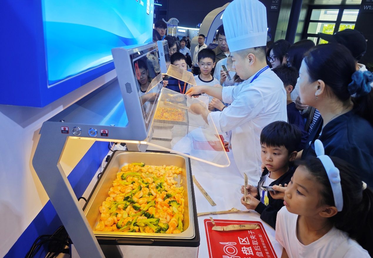 在C端智慧烹饪区,工作人员通过MIIKA扫码蒸烤箱,搭配标准化预制食材,短短几分钟就烹制出辣炒鸡与炒虾仁。金黄的鸡肉裹着鲜红辣油,虾仁洁白饱满缀着翠绿葱花,香气瞬间弥漫展台。品尝环节,小记者们迫不及待拿起餐具——辣炒鸡鲜辣入味不呛喉,鸡肉紧实弹牙;炒虾仁鲜嫩Q弹,鲜味十足。“这些食材都通过量化品控体系把关,从源头确保安全,AI系统还能精准控火候、调调料,保证每一口都好吃!”工作人员的讲解让大家吃得更安心。