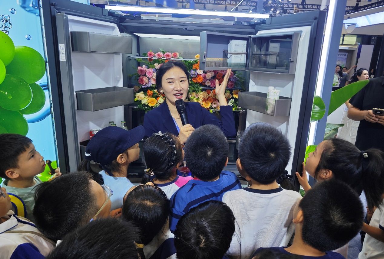 随后,小记者们来到海尔食联网展台,开启“舌尖上的科技之旅”。作为海尔集团重点孵化的创新生态企业,海尔食联网以“1+3+N”模式搭建数智美食平台,“器食一体”解决方案让大家直呼神奇。