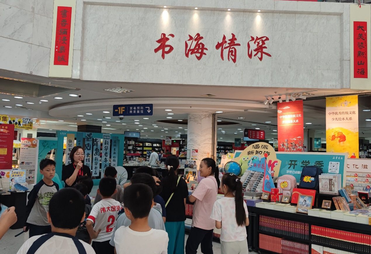 课程结束后,小记者们开启了“小小图书管理员”实践环节。书城的周老师详细介绍了新华书店的历史沿革与楼层布局。据介绍,新华书店的历史可追溯至1937年4月24日的延安清凉山,从“陕西延安新华书局”到如今的文化品牌,它始终肩负着传播精神食粮的使命。青岛新华书店书城自1998年10月1日开业以来,以“打开的书”般的独特建筑外观成为岛城文化地标,“书海情深”服务品牌更是荣获山东省服务名牌。