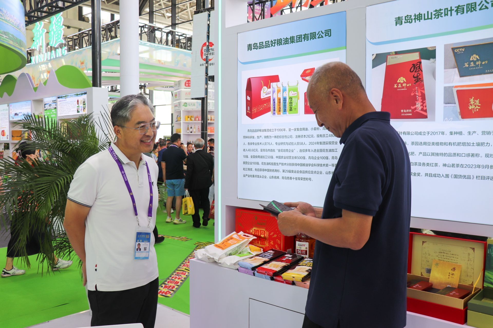 走进东博会农业合作展区,青岛展团的绿色主视觉设计格外醒目——背景板上精美绝伦的山海画面与展台上琳琅满目的优质农品相得益彰,既凸显青岛“山海之城”的地域特色,又传递出“绿色、优质、安全”的产品理念。