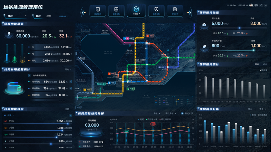 在智慧赋能方面,青岛地铁构建“虚拟电厂平台+线网智慧能源管控系统+多专业协同控制算法集群”三维控制架构,打造新型能源体系智慧大脑,实施“轨道交通+人工智能”行动,建设线网云平台和人工智能算力中心,推动大模型、智能体技术与绿色低碳发展深度融合。
