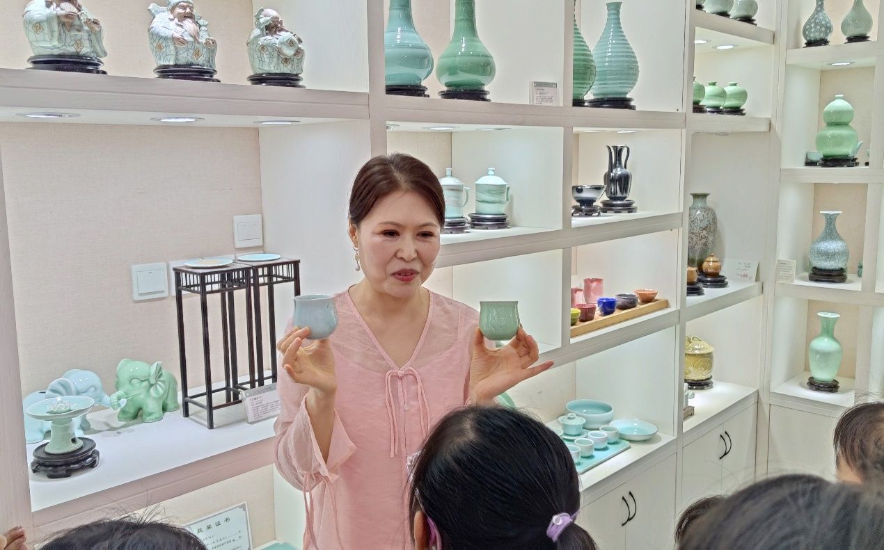 在青岛市中华职业教育社非物质文化遗产传承与保护专门委员会主任、青岛市翰林非物质文化遗产研究院赵院长的带领下,小记者来到青岛天工龙泉青瓷博物馆。