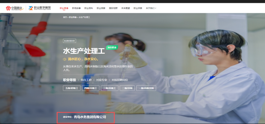 2025年1月,山东省启动职业数字展馆参建工作,青岛市积极组织有意向单位申报参与。4月,青岛市4家单位获批承建6个职业的数字画像工作。此次上线的水生产处理工职业为青岛水务集团有限公司承建,风险管理师职业为青岛海检集团有限公司承建。职业数字画像分为职业卡片、技能要求、职业展示、职业展望和职业探索五大栏目,设有29个子模块内容,通过文字、图片、视频、动画、虚拟仿真等多种方式展示。公众可以通过登录网址https://chinajob.mohrss.gov.cn/zy,或访问“中国就业网”点击“职业数字展馆”栏目,也可关注“中国就业创业”微信公众号点击菜单栏“职业数字展馆”,详细了解各个职业的基本信息。