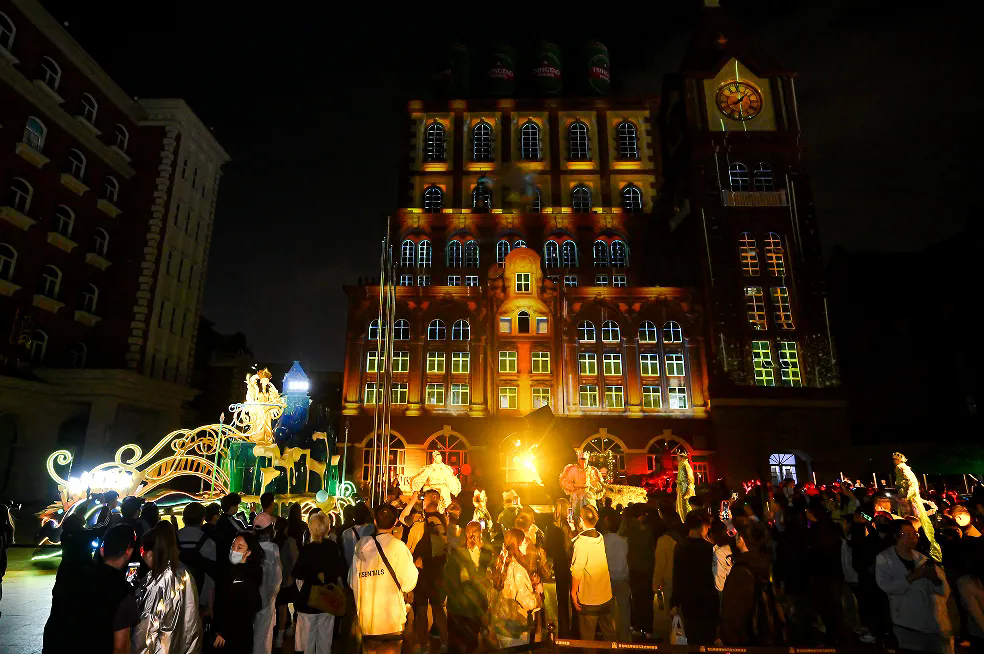 截至目前,每年的5月至8月期间,青岛啤酒博物馆的《金色奇妙夜》会把啤酒厂变成一座“奇幻剧场”,以“啤酒+文旅+科技”形式破圈融合,跟着“啤皮猫”的剧情线索,体验者可以感受五大主题场景里藏着的互动歌舞和惊喜彩蛋,逛展、看秀、玩互动一步到位。