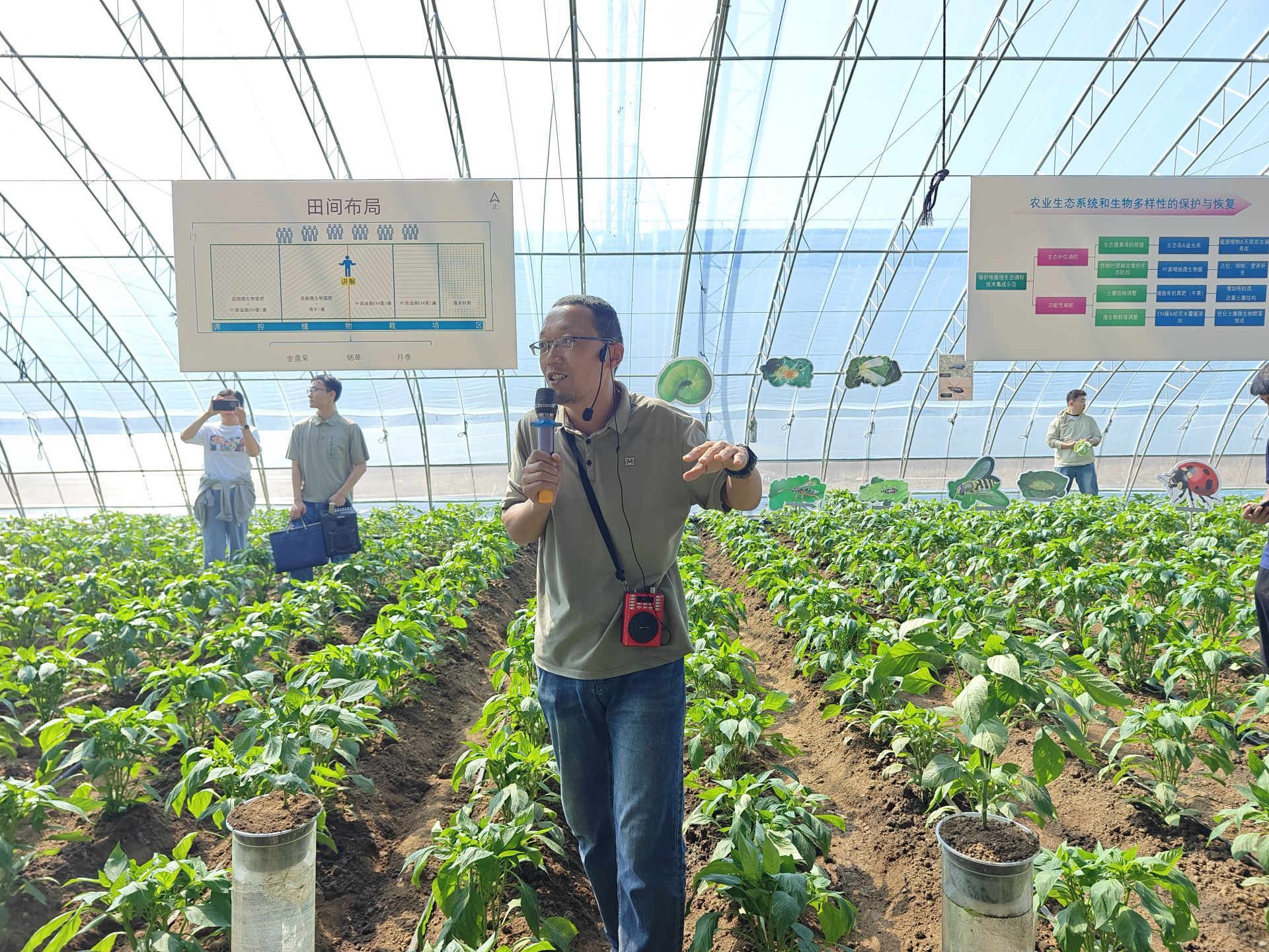 在另一处观摩基地内,金盏菊含苞待放,与翠绿的青椒相映成趣,新型生态调控模式引起人们的关注。“月季和烟叶吸引蚜虫,蚜虫来了,天敌昆虫草蛉、瓢虫、食蚜蝇、蚜茧蜂也跟着来了,这就减少了棚内化学农药的使用。”市农技中心生态农业首席专家王永显如是说。