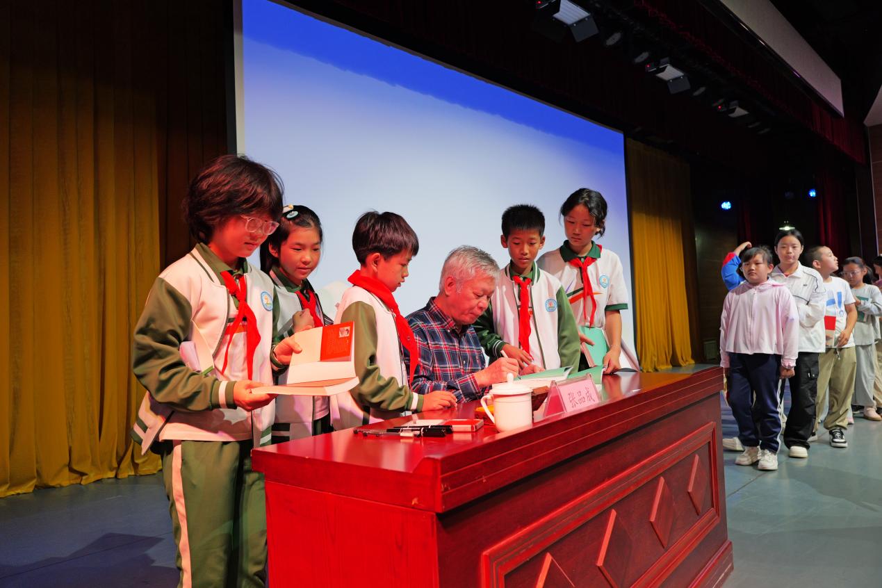 讲座结束后,孩子们热情高涨,手捧图书有序排队,请张老师签名留念。张老师一边认真签名,一边与孩子们亲切交流,勉励他们以书为伴、常读经典。