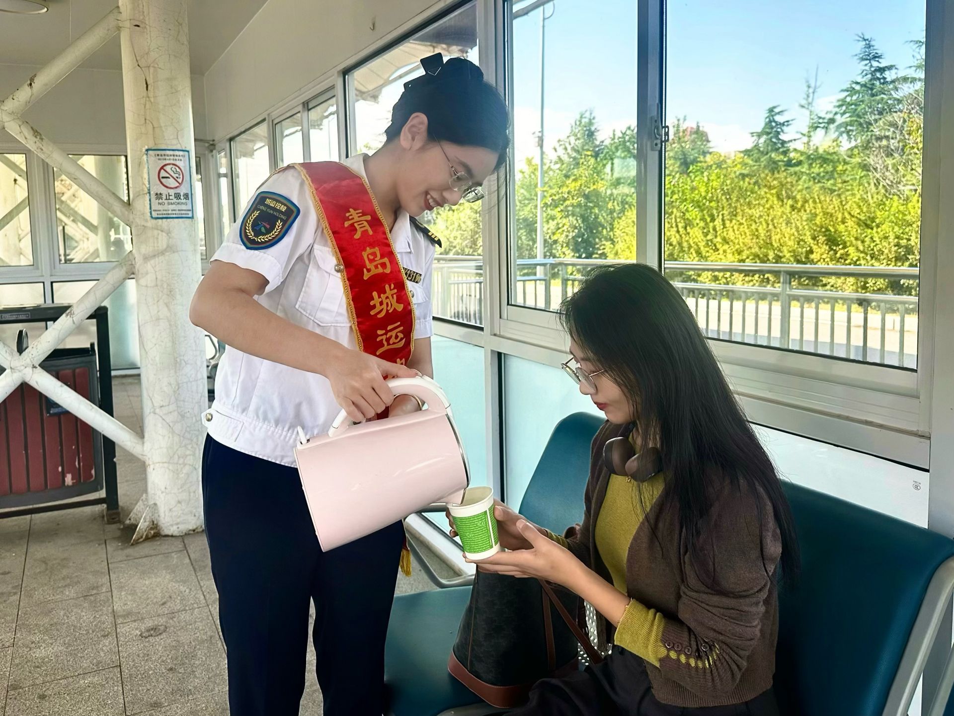 驿站还提供信息咨询与应急救助服务。身着醒目工装的志愿者如同“活地图”,耐心解答公交线路、景点方位、特色美食等咨询,并提供清晰的换乘指引。站内还常备急救药箱、热水、一次性雨具等应急物资,为游客的旅途增添一份安心。