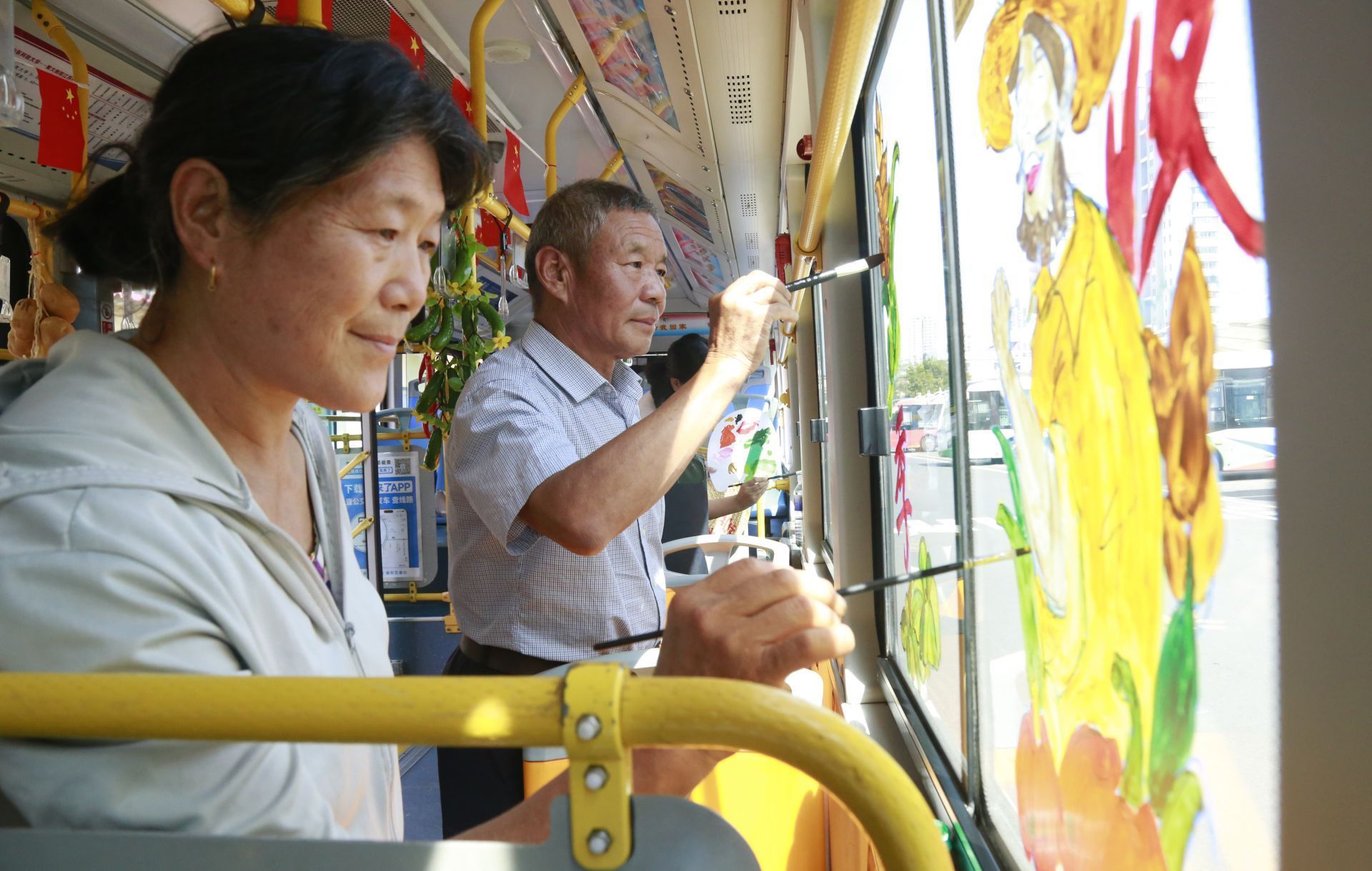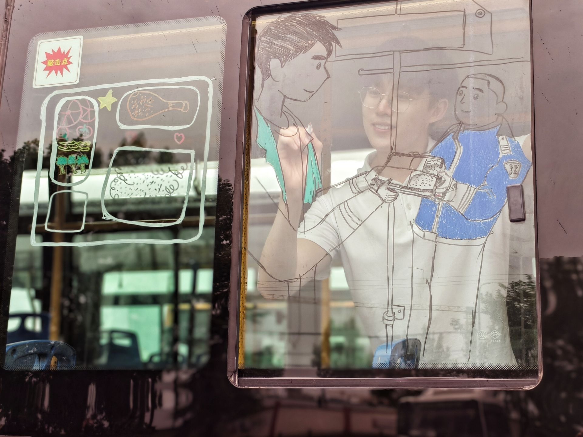 记者从城运控股公交集团了解到,这场覆盖青岛多区域公交线路的手绘行动汇聚了多方力量,从公交驾驶员到幼儿园孩童、从书画工作室师生到孤独症儿童、从乘客代表到公交爱好者,不同群体带着相同的热情参与创作。他们以车窗为“画纸”倾情创作,每一笔都蕴含着深情与创意,让原本功能化的车厢升级为传递理念、承载情感的“流动载体”。