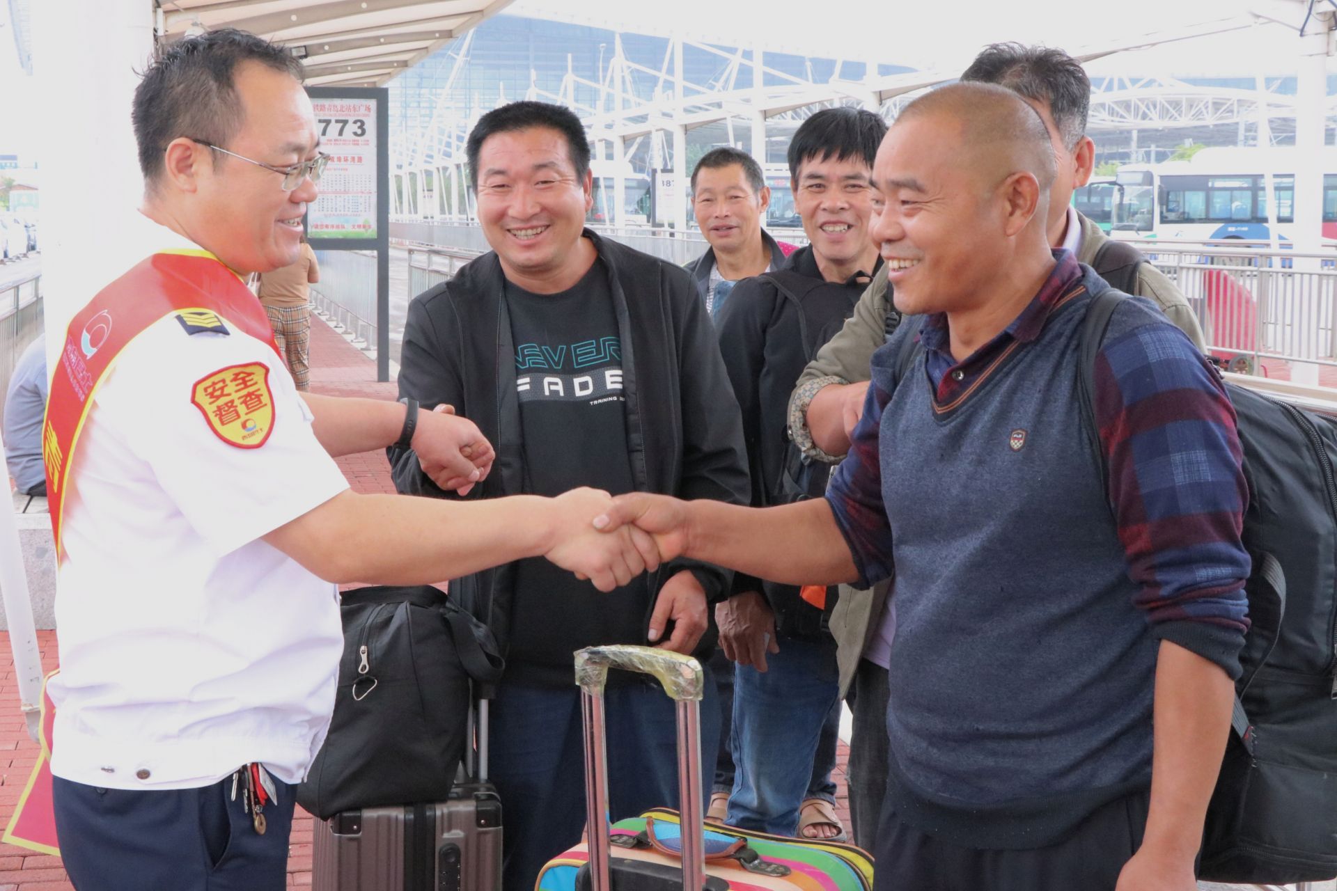 节日期间,不少旅客夜间抵达青岛北站。为给深夜抵达青岛的乘客提供火车接驳服务,李沧巴士公司24路、207路夜接驳车于23:00、23:30进行接驳,驾驶员提前10分钟进站,主动帮助旅客搬运大件行李,并坚持夜间始发站站立式服务。