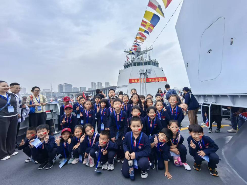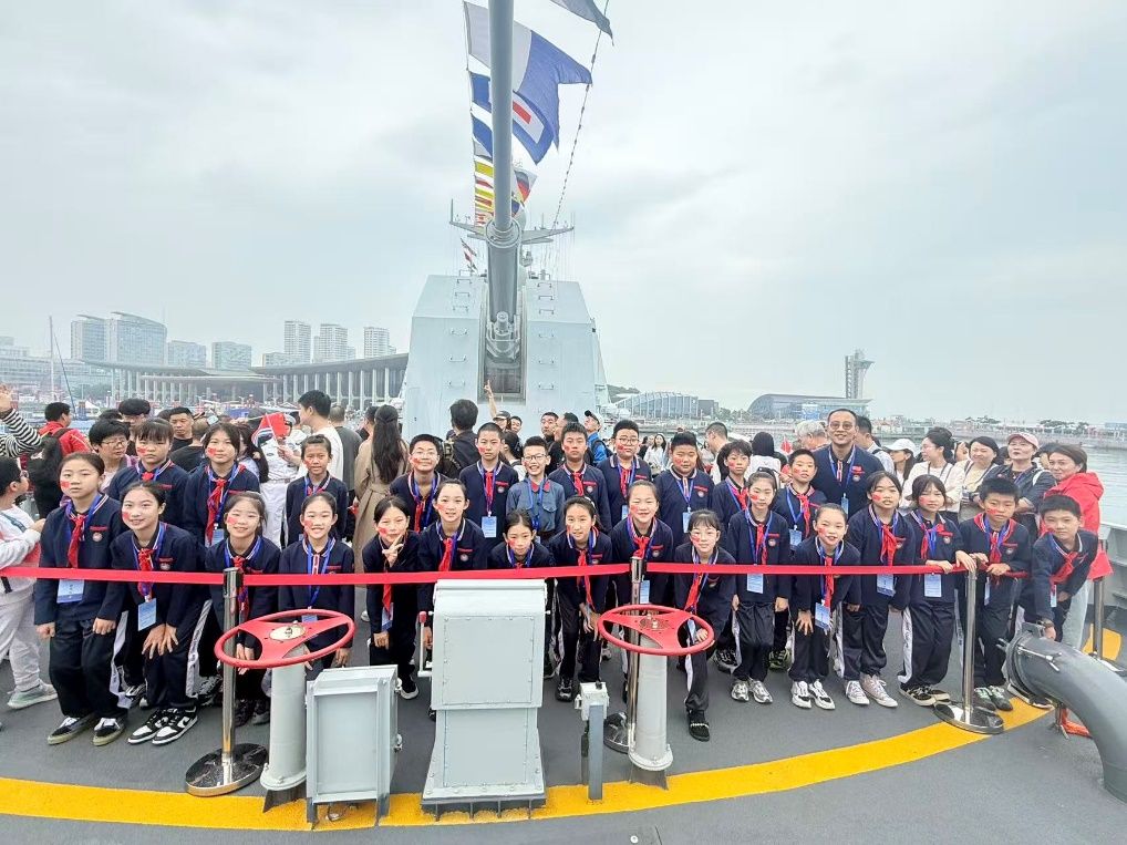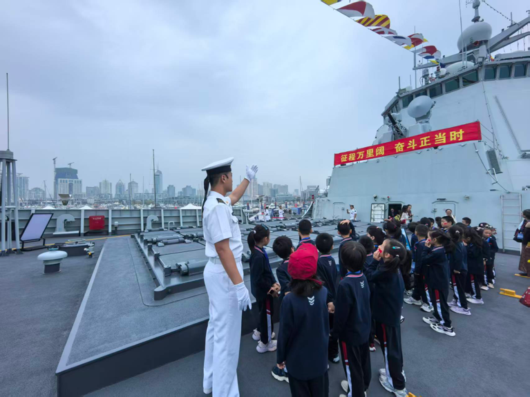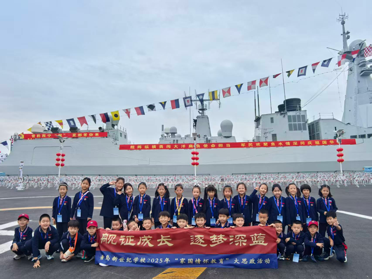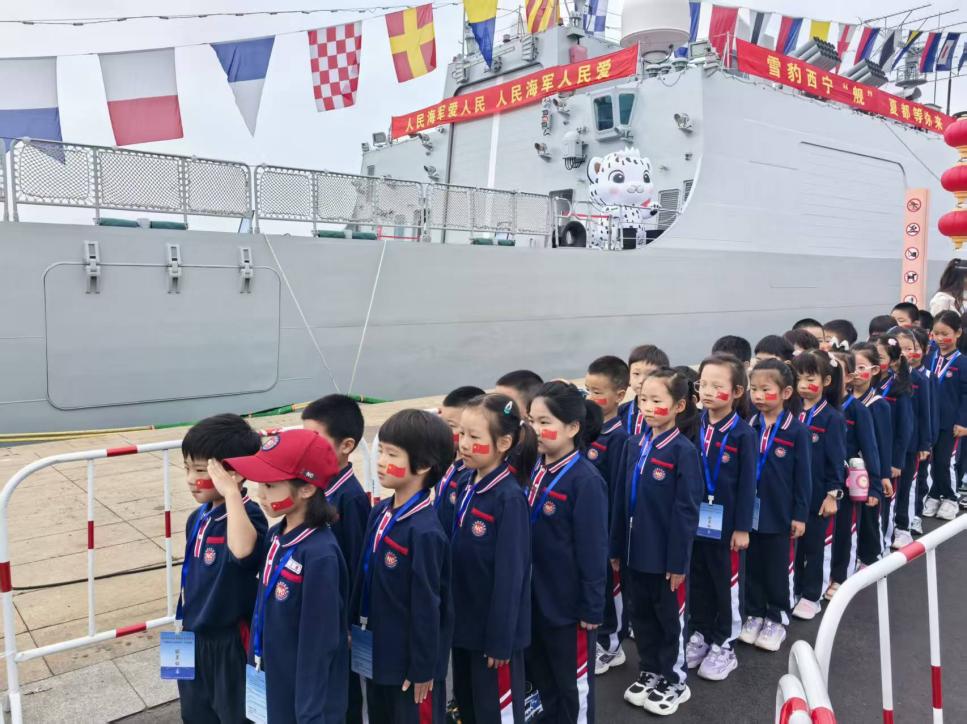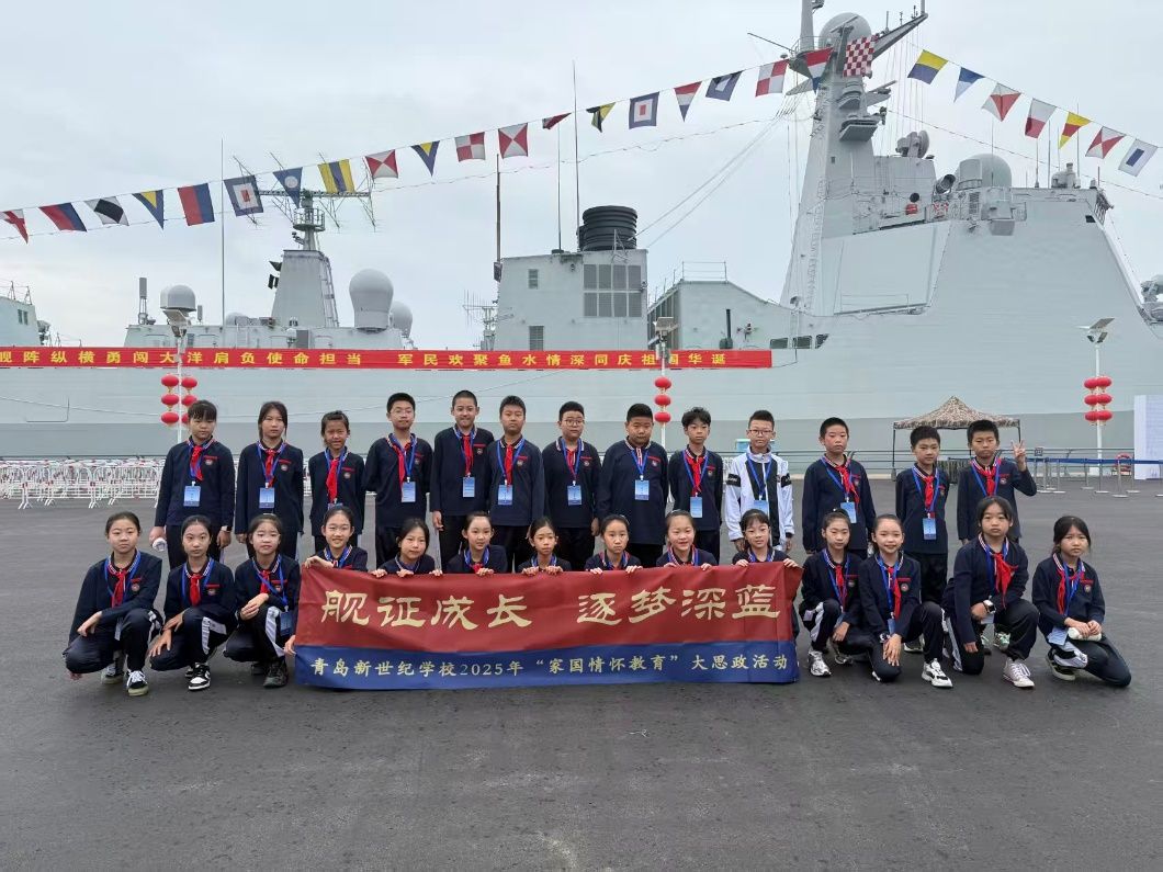 近日,青岛新世纪学校学子在青岛奥帆中心码头,一起参观了北部战区海军导弹驱逐舰“西宁舰”、导弹护卫舰“芜湖舰”并参加现场组织的“舰证成长,逐梦深蓝”青岛市中小学生文艺展演活动。