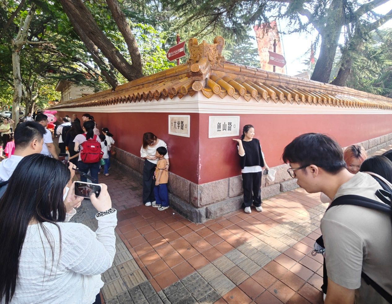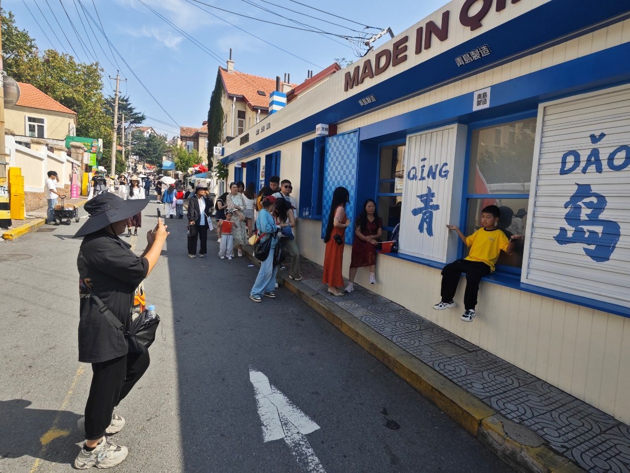 青岛栈桥之上,人头攒动,游客们扶栏眺望碧海蓝天,感受海风轻拂;海岸沿线同样挤满了人群,欢声笑语与海浪声交织。老城区内,写有“青岛”字样的网红打卡墙、绘有卡通形象的创意漫画墙前,游客们排起长队,争相拍照留念,记录美好瞬间。