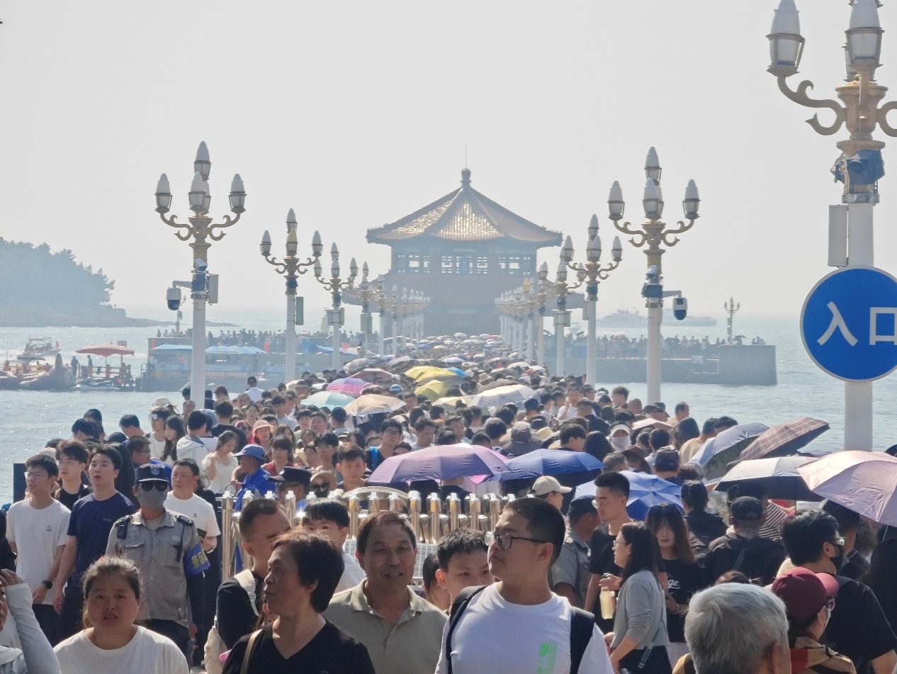 来自河南的游客李先生说:“一直想来青岛,国庆终于圆梦,这里的景色和氛围都太棒了!”热闹景象充分展现出青岛独特的城市魅力。