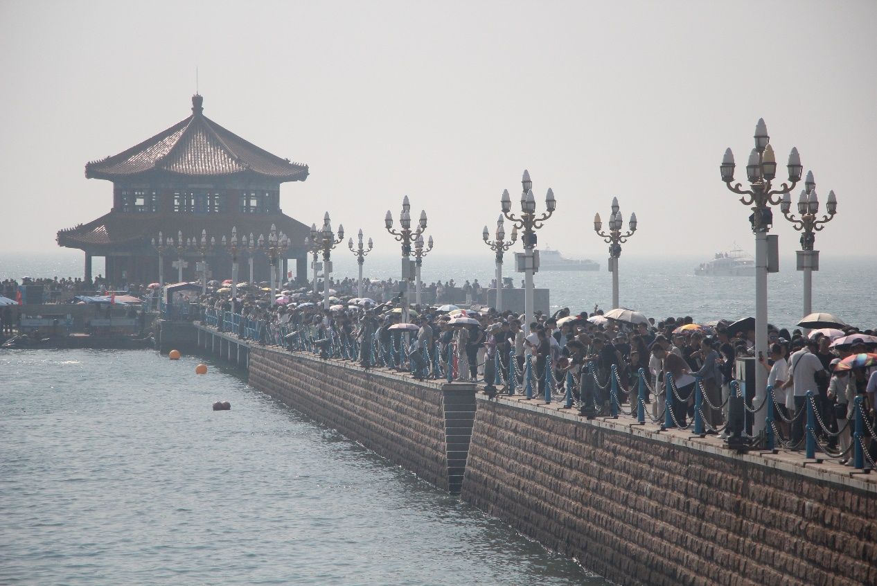 10月1日国庆节当天,青岛沿海景点和老城区等地迎来客流高峰,各地游客纷至沓来,共赏城市风光。