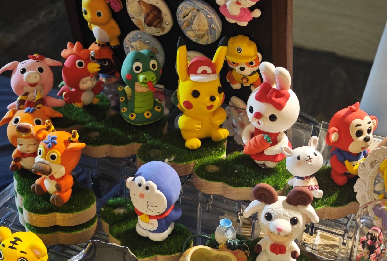 来到五楼,这里宛如一个充满奇幻色彩的文化艺术天地。面塑展台前,传承人孙师傅手指灵动,彩泥在他手中迅速变幻。眨眼间,一件卡通玩偶便活灵活现地呈现在大家面前。