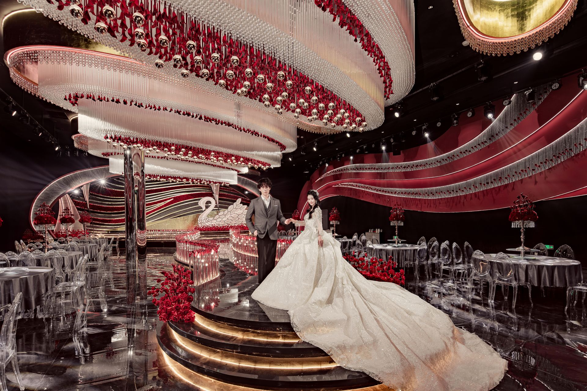 火爆的背后,是该酒店通过深度分析客户需求构建的全流程婚庆服务体系。“酒店旨在为年轻人打造‘一站式’婚礼堂,婚礼堂除了包含场地和餐食外,还提供伊甸园、施华洛、天空之境、凡尔赛、奥斯卡、水晶之恋等不同主题风格的沉浸式主题宴会厅,灯光、大屏、舞台以及婚礼仪式、主持人、摄影摄像等全方位服务可供新人选择,还包括激光灯、雪花机、定制灯光等特色服务。”王晓雷介绍说,他们从前期的婚纱礼服租赁、婚纱照拍摄、定亲宴筹备,到婚礼当天的跟妆、主持、摄影摄像、车队调度,以及六个风格各异的婚礼宴会厅,均可实现“一站式”统筹服务。此外,他们还策划了富有地方风俗特色的婚庆环节,为新人婚礼增添独特文化内涵。