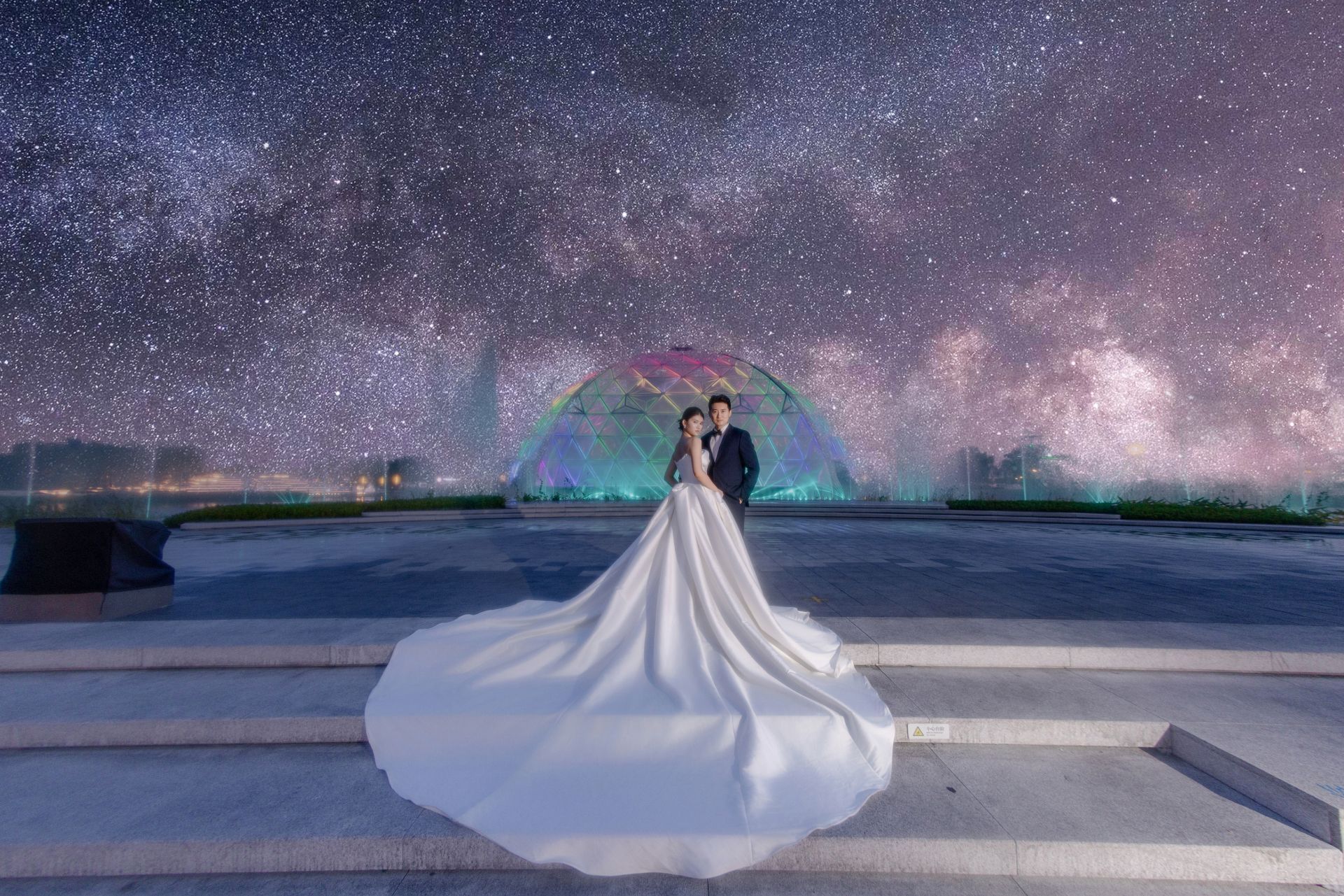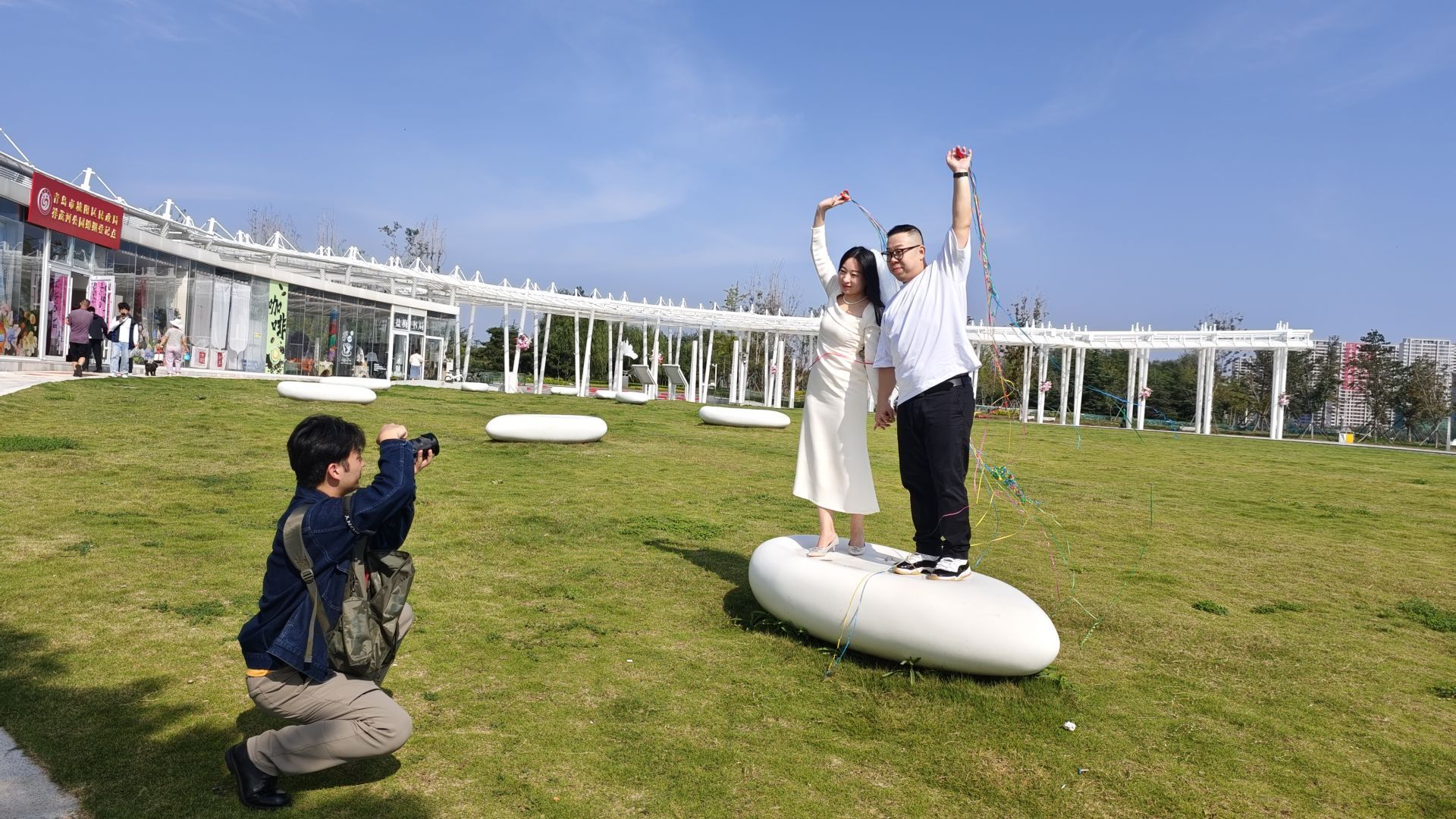 据介绍,东方伊甸园构建了由花田、天空步道、夜・湖秀等组成的“浪漫花海”“夕阳海景”“灯光水幕”等多元拍摄场景,兼顾唯美与创意风格,为新人提供了多种选择,“场景组合定制”式服务满足新人对个性化婚纱照的需求。此外,“仪式+婚拍+晚宴”的一体化婚礼方案将生态景观与婚庆服务深度结合,为“甜蜜经济”注入文旅特色,进一步提升区域婚恋服务的核心竞争力。