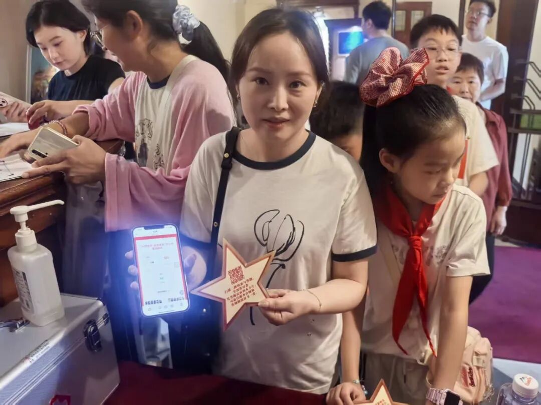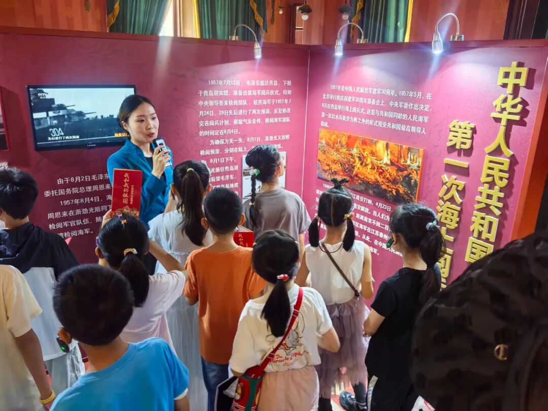 假日期间,小观众在社教人员的带领下,手持精心设计的互动任务卡,先后参观“伟大贡献——中国与世界反法西斯战争”和“闪光的足迹——毛泽东与青岛”两大红色展览。