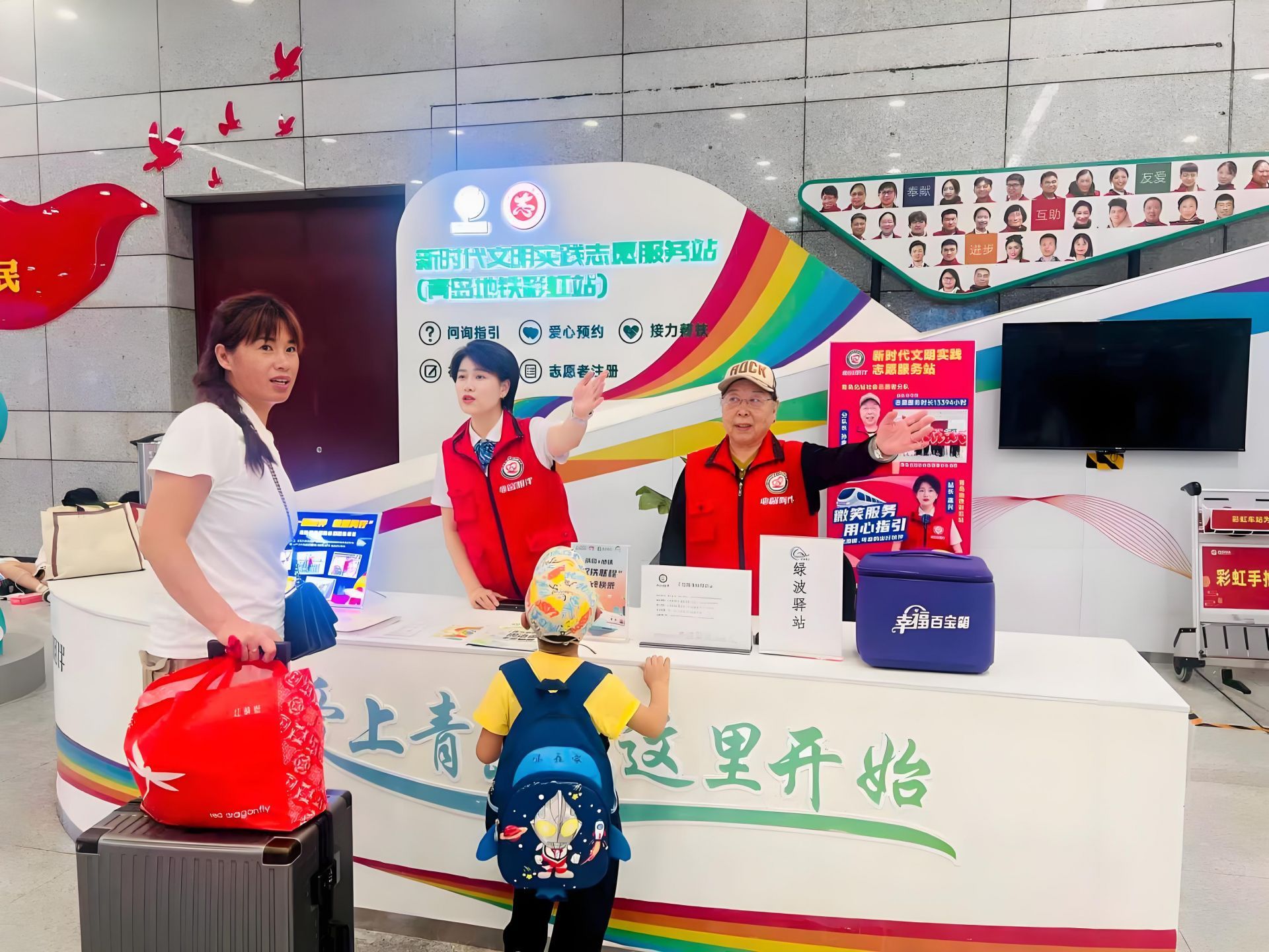 各交通口岸在客流高峰时段增派志愿服务力量,为旅客提供引导购票、搬抬行李、帮扶特需乘客等暖心服务,部分车站还设置非遗漆扇等文化体验活动,让旅客出行之路充满温情,共同绘就岛城文明的亮丽底色。交通运输执法人员在火车站等客流集散地,主动为过往旅客提供咨询引导、协助提拿行李等贴心服务,雨夜急送游客就医,解决出行中遇到的困难。