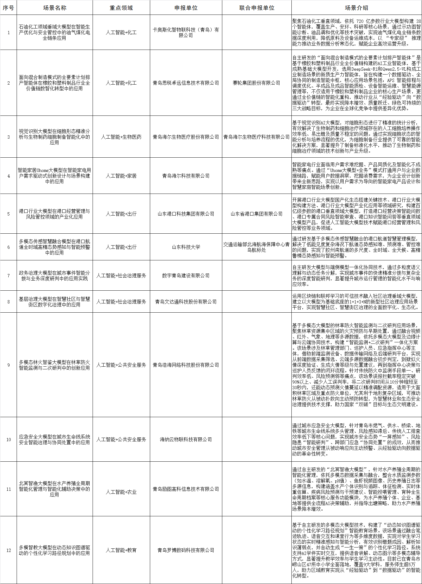 附:青岛项目入选2025年山东省人工智能大模型 “百景智能”典型应用场景名单