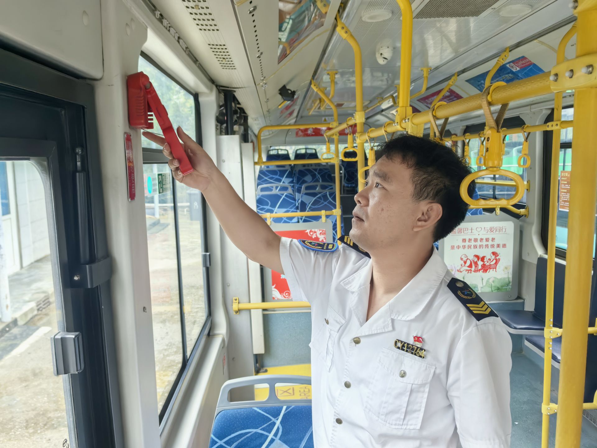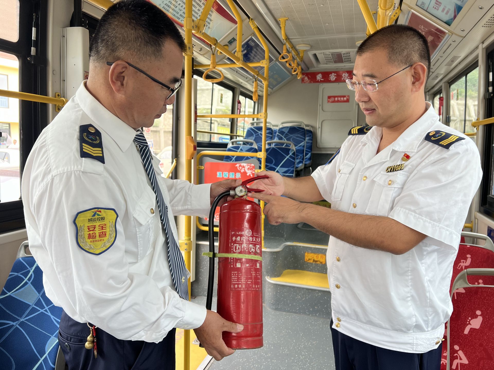 10月13日上午,在山东大学公交枢纽站、灵山卫公交枢纽站、仰口、北宅公交枢纽站、汽车北站、王村路等多个场站,安全检查人员逐车细致查验了车载灭火器、安全锤、应急车门、监控设备等安全设施。现场工作人员严格检查,确保灭火器压力达标、安全锤配备齐全且取用便捷、应急车门启闭灵活有效,从细节处筑牢消防安全屏障。