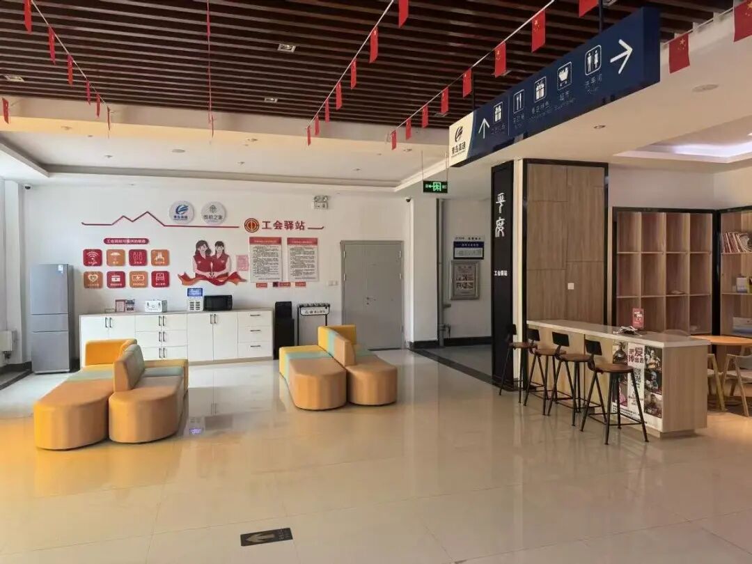 位于青岛汽车东站的驿路畅达暖新驿站,核心服务覆盖出租车司机、网约车司机、快递员、外卖骑手及城际快巴司机等户外作业群体,以“全方位保障、人性化服务”为定位,构建起涵盖休憩、餐饮、车辆服务、生活配套的“半小时服务圈”。