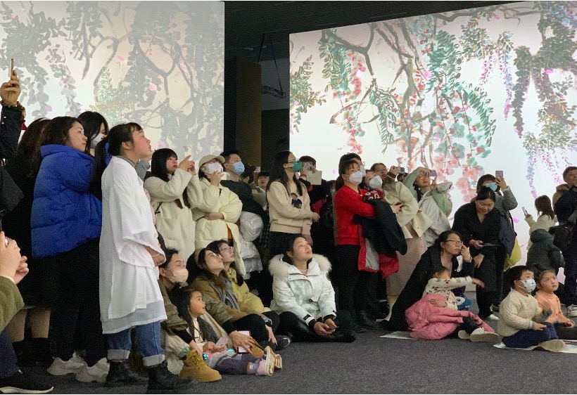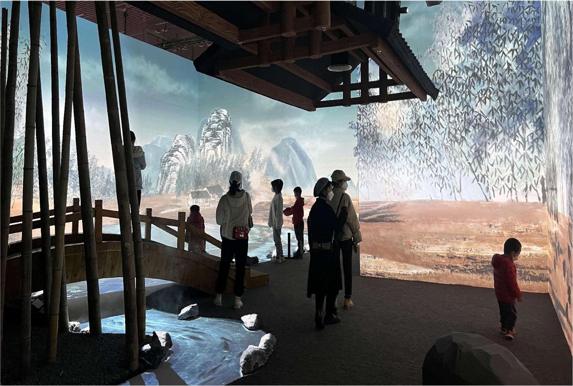 作为国内首个以齐白石为主题的沉浸式艺术展,齐白石数字艺术展项目已在全国九城巡展,累计吸引观众超过百万。通过数字光影与互动技术,观众得以“走进画境”,实现了艺术传播与市场效益的双重成功。展览通过技术与文化的深度融合,推动了传统艺术的数字化转化,并为IP增值提供了新的商业化路径。结合AIGC生成画面与互动装置,让观众深度参与其中,提升了观展的沉浸感与参与感。该项目市场反响热烈,单站最高接待约60万人次,全网曝光量突破亿级,展现了文化版权IP在数字化转化中的市场潜力。