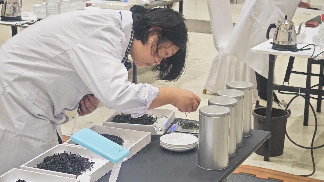 评茶赛项的赛场内,茶香袅袅弥漫,清甜气息沁人心脾。选手们指尖在茶盘与茶具间轻盈流转,每一个动作都娴熟不已。他们先是俯身细观茶叶的条索与色泽,从外形中分辨茶品等级;再轻撮茶叶凑近鼻尖,闭目细嗅香气里的层次变化;随后精准注水冲泡,待茶汤稍凉便浅啜慢品,让醇厚滋味在舌尖缓缓散开;最后还会仔细观察茶底的嫩度与匀度——一整套流程下来,专注的神情与专业的姿态尽显无遗。