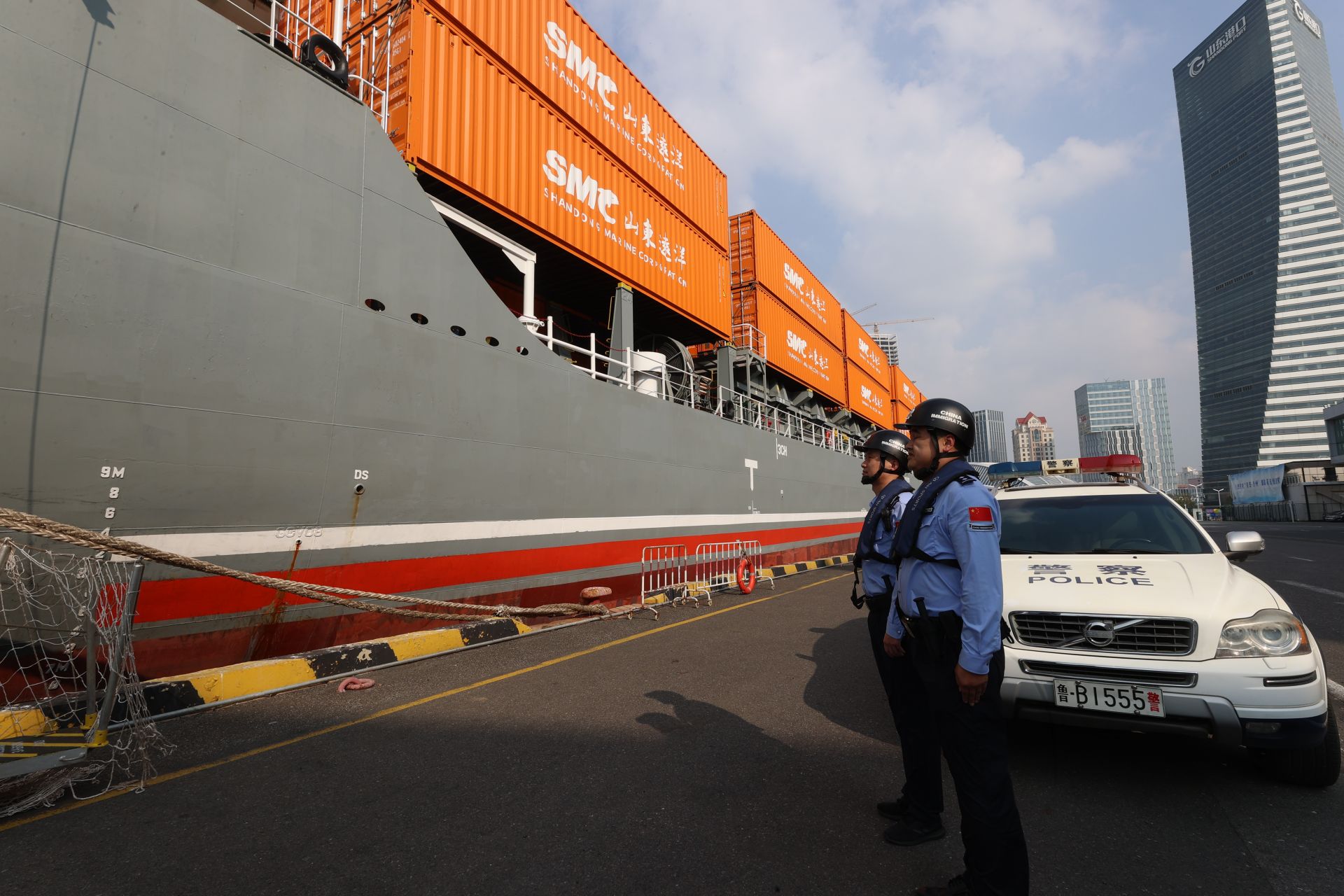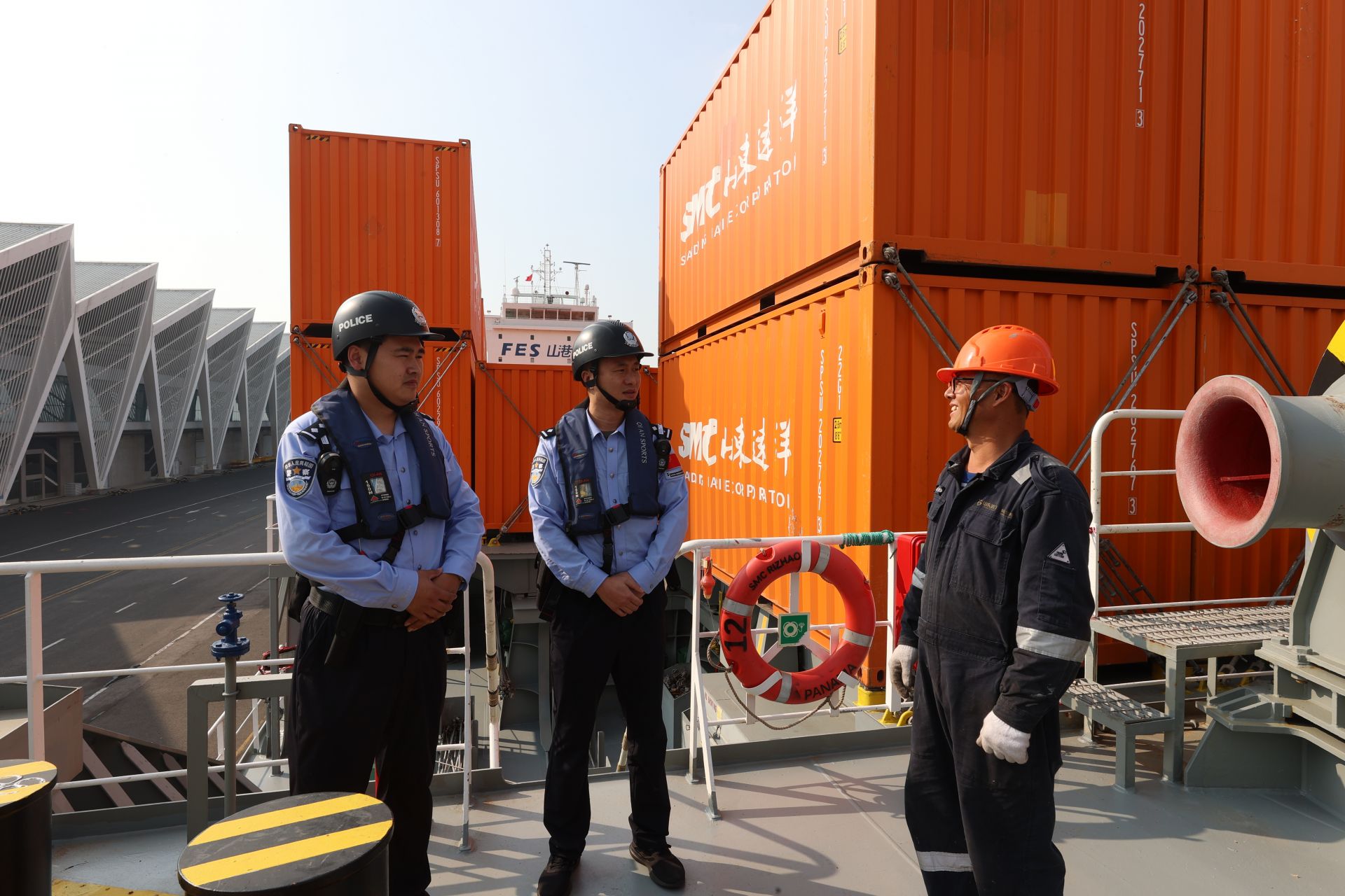 10月16日,“山港日照”轮外贸集装箱船舶驶离青岛港大港口岸,标志着青岛至济州集装箱航线正式开通。山东出入境边防检查总站青岛边检站主动对接口岸联检单位、码头公司及代理公司,提前掌握航线与船舶信息,制定“一船一策”专项服务方案,实现通关手续“一站式”办理,顺利完成该轮入境边防检查任务。