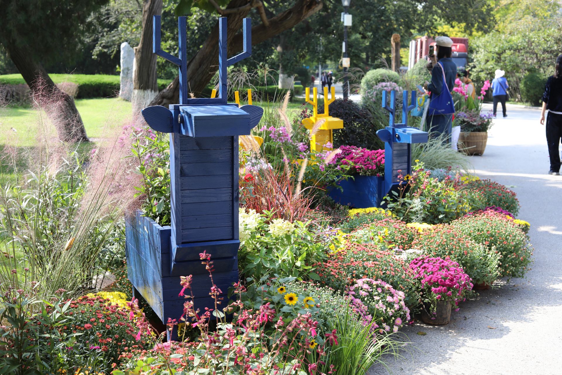 菊展区域覆盖中山公园南门至西门环形路线,并延伸至动物园北门。沿途设置了“菊韵流霞”“瑞兽呈祥”“菊艺长廊”“时光院落”“菊韵雅集”等20余处主题花景,结合向日葵、一串红、芙蓉菊等时令花卉,形成步移景异、处处皆画的游览动线。