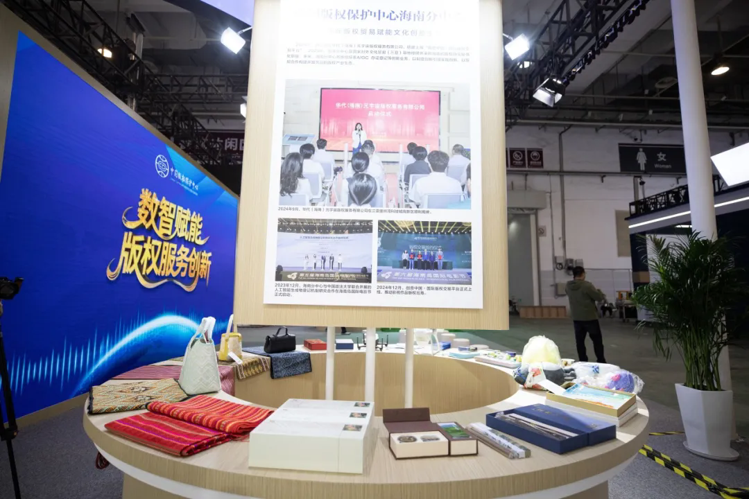 此外,展区内还设置了三个独立岛台,展示中国版权保护中心海南分中心的运行和云南分中心的筹建情况,展示所属中华版权服务有限公司、中国版权杂志社有限公司的案例及版权生态合作方的版权衍生成果,介绍展示合作方中共一大纪念馆的红色文化内容及其文创衍生品,展现版权赋能区域发展、护航新兴业态、激发文化创新创造活力。
