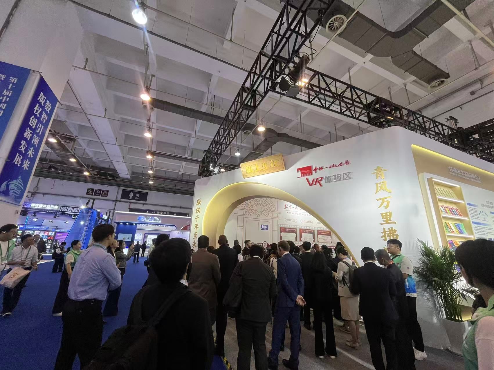 该展区以“数智赋能版权服务创新”为主题,现场还特别设置了VR电影体验区,聚焦“数字一大·初心之旅”红色文化沉浸传播,带领观众穿越回20世纪初的旧上海,重现中共一大召开的伟大时刻。