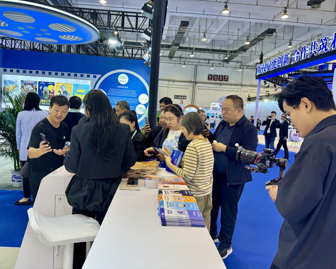 音集协的展位可谓是亮点纷呈。本届版博会上协会展区聚焦“协会使命与成就”“会员生态”“实践创新”“司法实践”及“科技赋能”五大板块,通过图文展板、数据可视化大屏、互动体验等多种形式,系统呈现了我会在著作权集体管理制度建设、会员服务、技术平台构建等方面的积极探索与显著成效。