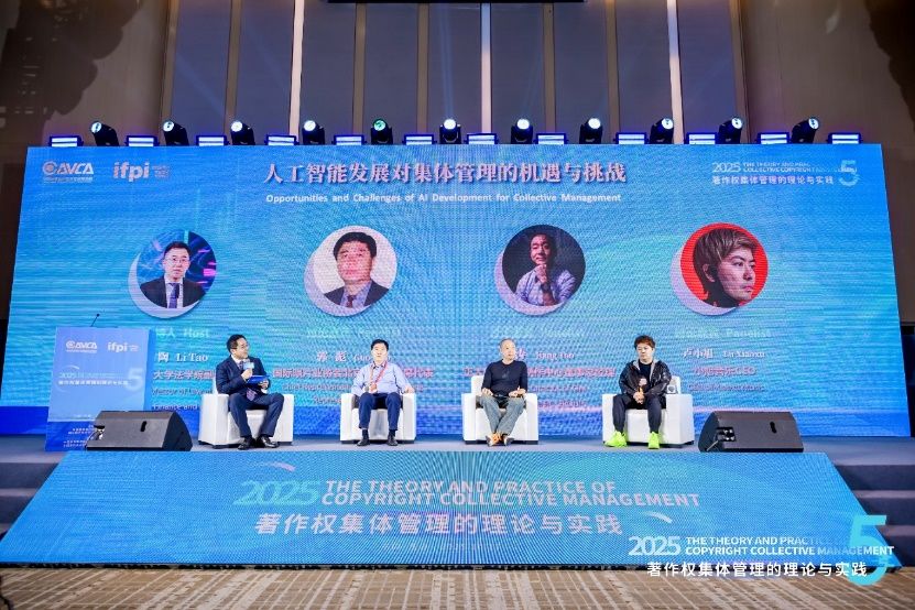 在“人工智能发展对集体管理的机遇与挑战”议题的圆桌讨论中,中央财经大学李陶副教授与小旭音乐CEO卢小旭、正大国际音乐董事总经理蒋涛、IFPI大中华区总裁郭彪等嘉宾,就AI音乐创作、虚拟歌手版权、训练数据合规等实际问题展开了激烈而富有建设性的对话。