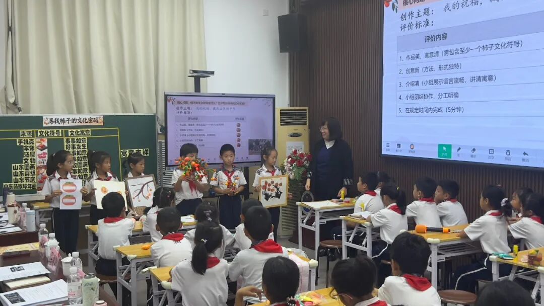 课例展示环节,青岛天山小学教师杨咪执教《探寻柿子的变身密码》,郭海燕执教《寻找柿子的文化密码》。两节课以“柿子”为载体,一节指向科学的实证性与逻辑性,一节指向文化的象征性与情感性,共同实现了核心素养的落地:不仅教会学生如何研究一个具体问题,更培养他们如何像科学家一样思考,如何像文化使者一样感受与传播。
