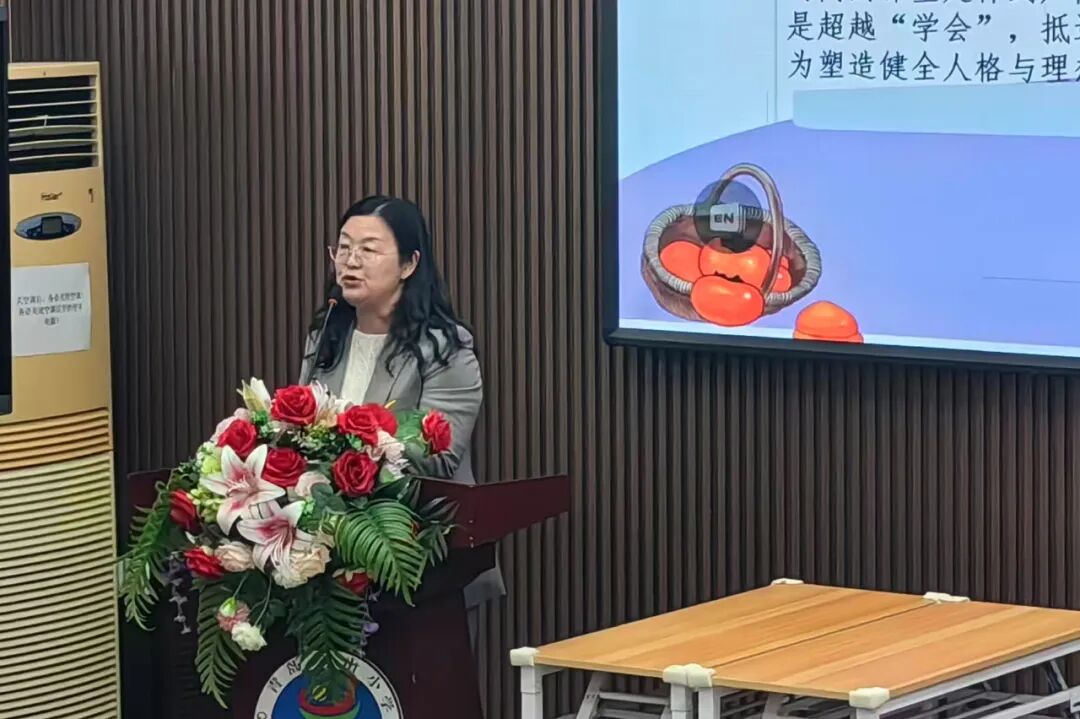 讲座分享环节,青岛天山小学校长王冬梅以《“柿柿如意”跨学科主题学习课程的开发与实践》为题,系统阐述了学校以项目式学习为路径,从思考原点、课程生成、实施路径到支撑体系、未来展望的完整探索历程。课程以“山东柿子藏着哪些家乡物产的自然、应用与文化密码”为核心,引导学生与中华优秀传统文化深度对话,与脚下的土地深刻联结,最终内化“民族魂”、扎牢“中国根”、彰显“和+六质”,成长为担当民族复兴大任的时代新人。