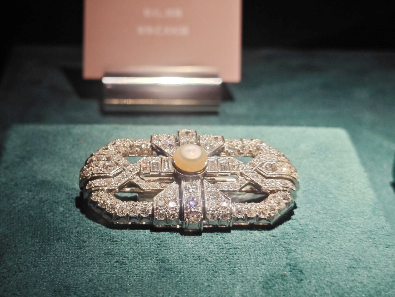 装饰艺术展区展出的一枚简洁大气的“铂金钻石胸针”。