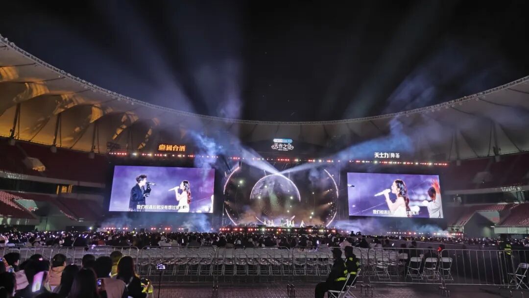 当晚,两场演唱会各具特色,点燃不同年龄段歌迷的热情。在青岛市市民健身中心,张杰演唱会现场掀起阵阵高潮,熟悉的旋律引发全场齐声合唱,万人“KTV”模式正式开启,每一首曲目都承载着歌迷的青春记忆,现场氛围热烈爆棚。而在青岛国信体育中心体育场,“天作之合”演唱会汇聚黄子弘凡、王赫野、汪苏泷、姚晓棠、喻言、张靓颖六位实力唱将,多元风格的演绎与全场大合唱交织,用音乐传递感动,为观众带来沉浸式视听体验。